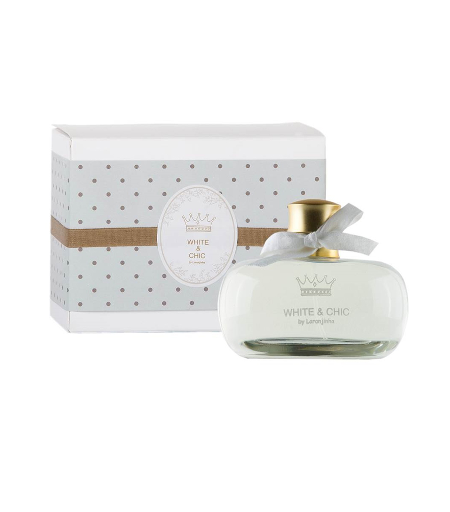 Se já recebeu alguma uma encomenda da Laranjinha certamente reparou no cheirinho que fica no ar, é a nossa Água de Colónia White & Chic.