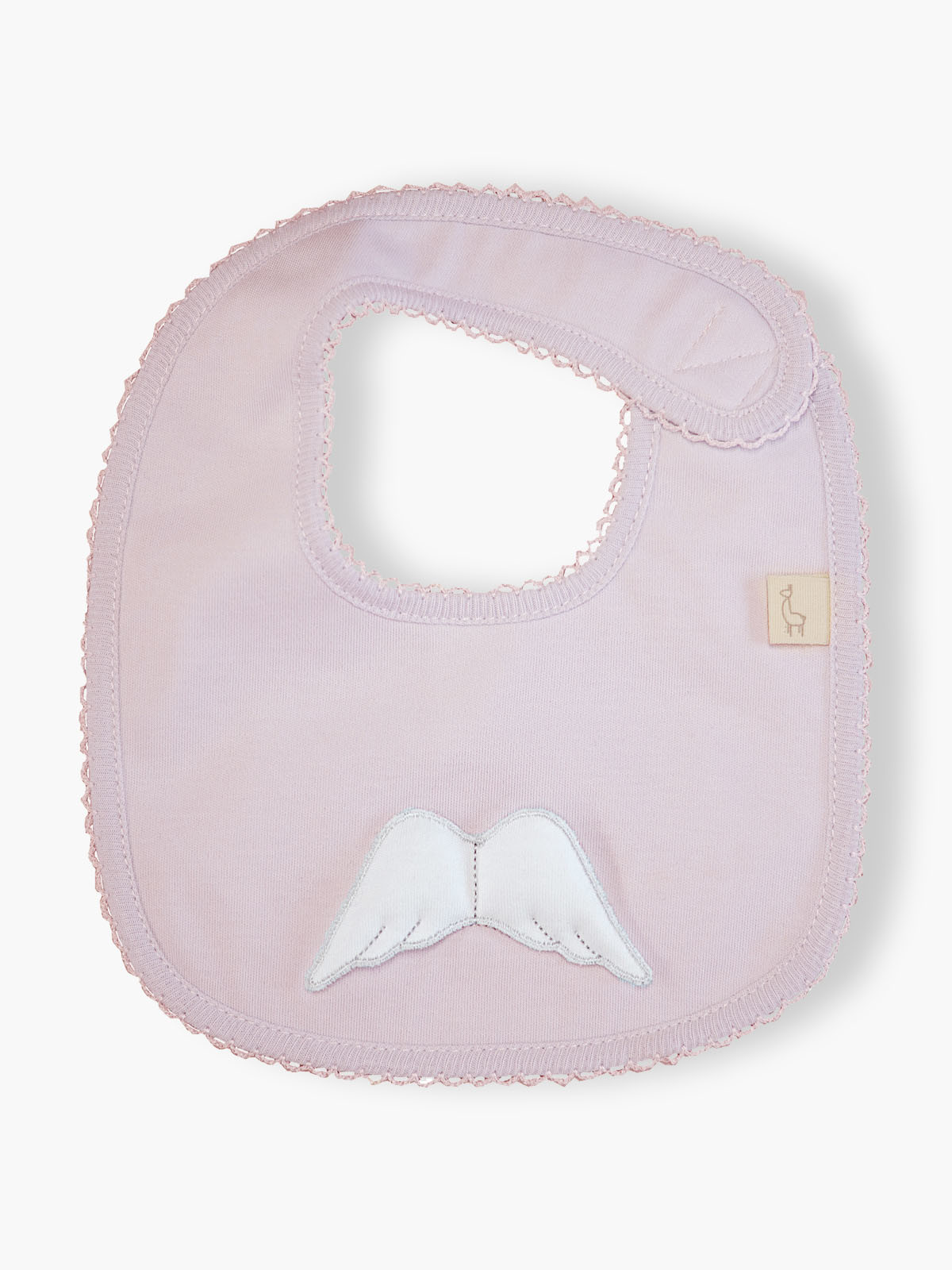 • Babete rosa claro com asas brancas e borda rendada