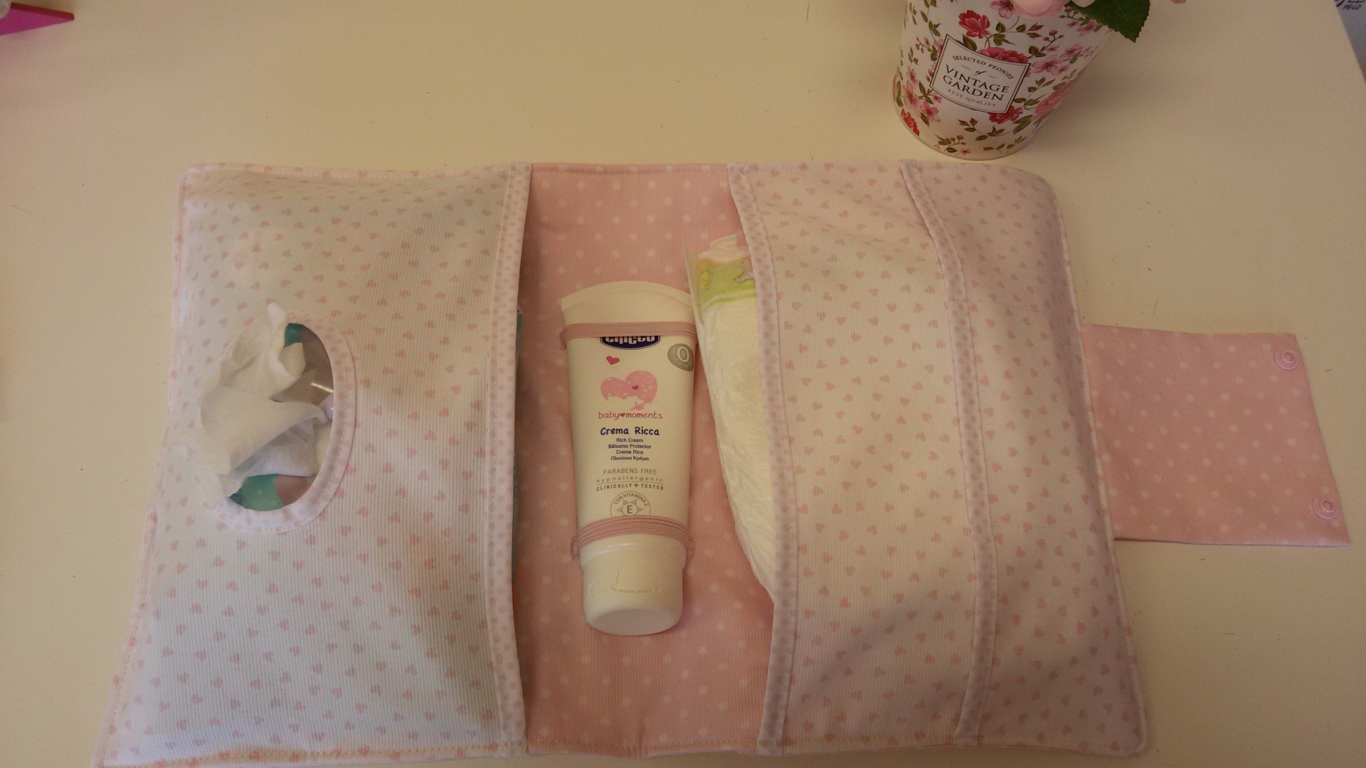Bolsa multiusos para colocar as fraldas, toalhitas e creme.