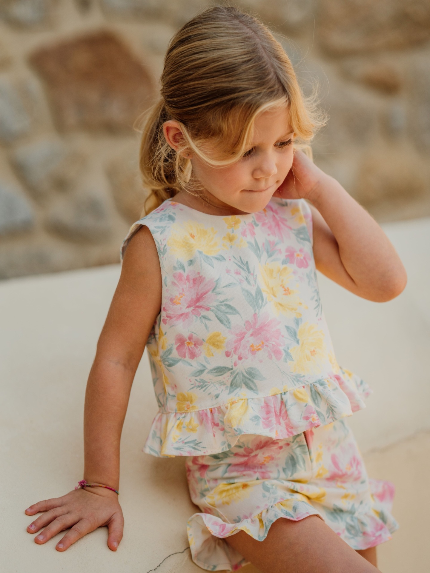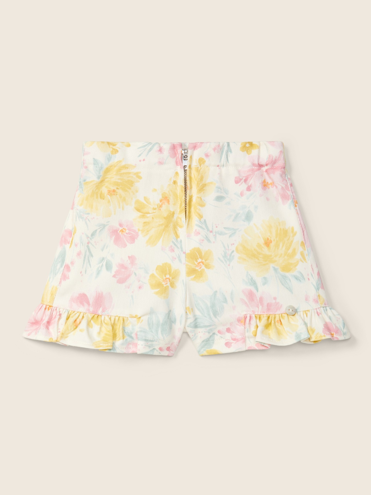 Calções até aos 6 anos. Os calções THE MOST WONDERFUL COLORS são produzidos numa mistura suave de algodão, poliéster e elastano, com um delicado padrão floral em aguarela. A cinta elástica suave permite obter o melhor conforto. Aperta na frente com fecho zip.