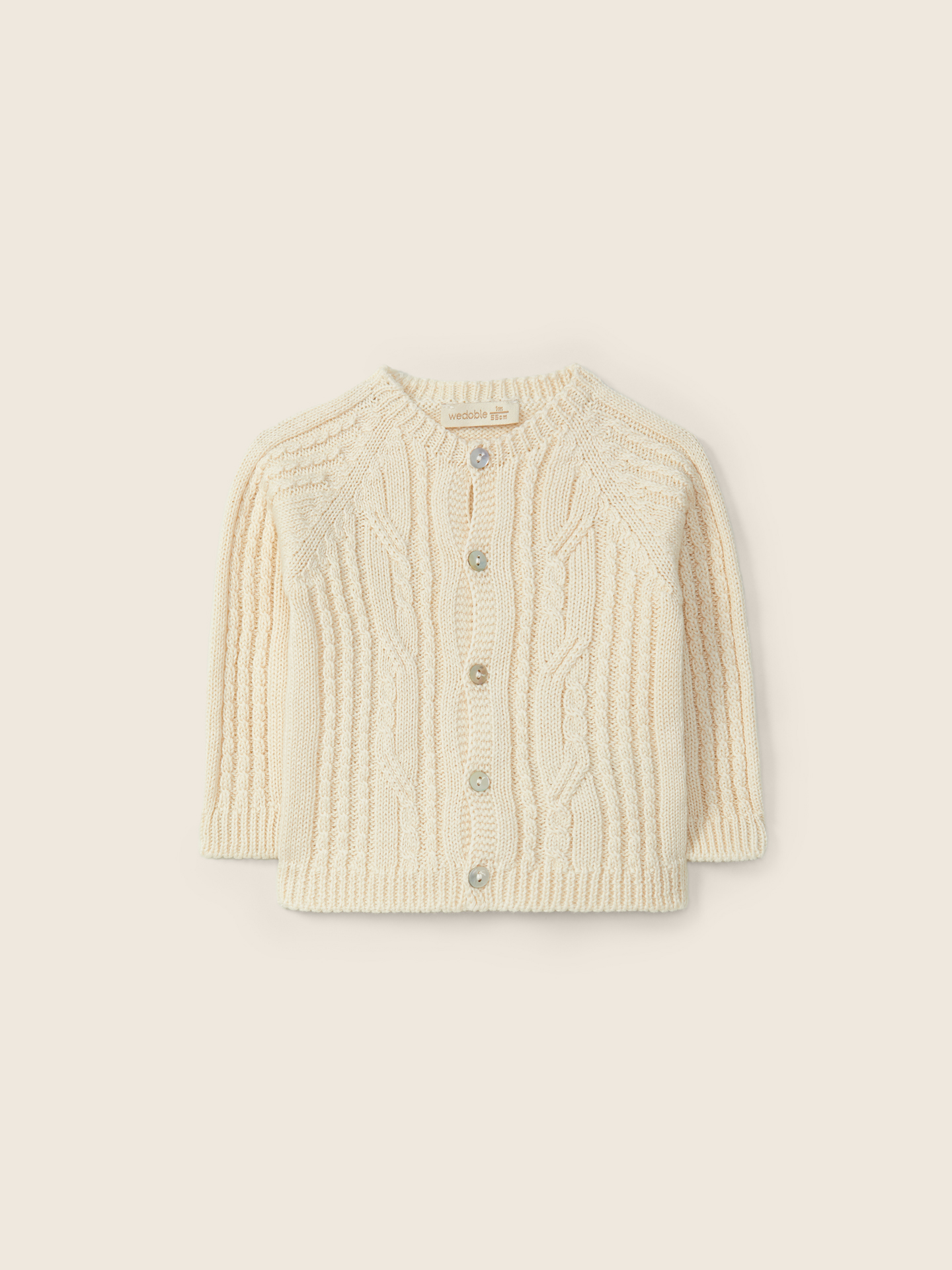 • Camisola de bebé em malha creme com botões e padrão de tranças