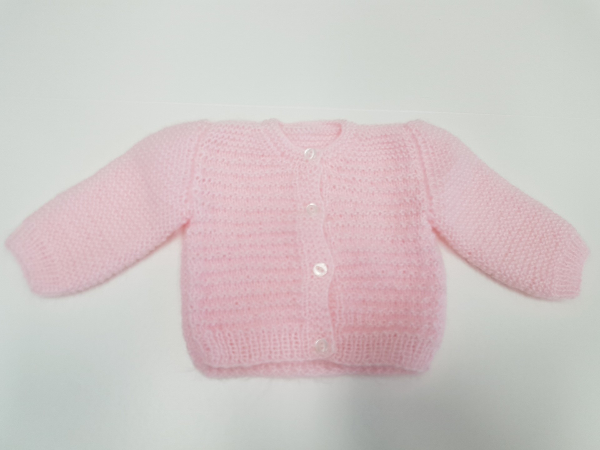 • Camisola de bebé cor-de-rosa tricotada com botões brancos