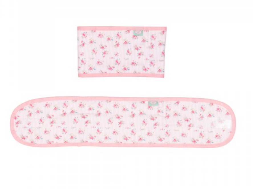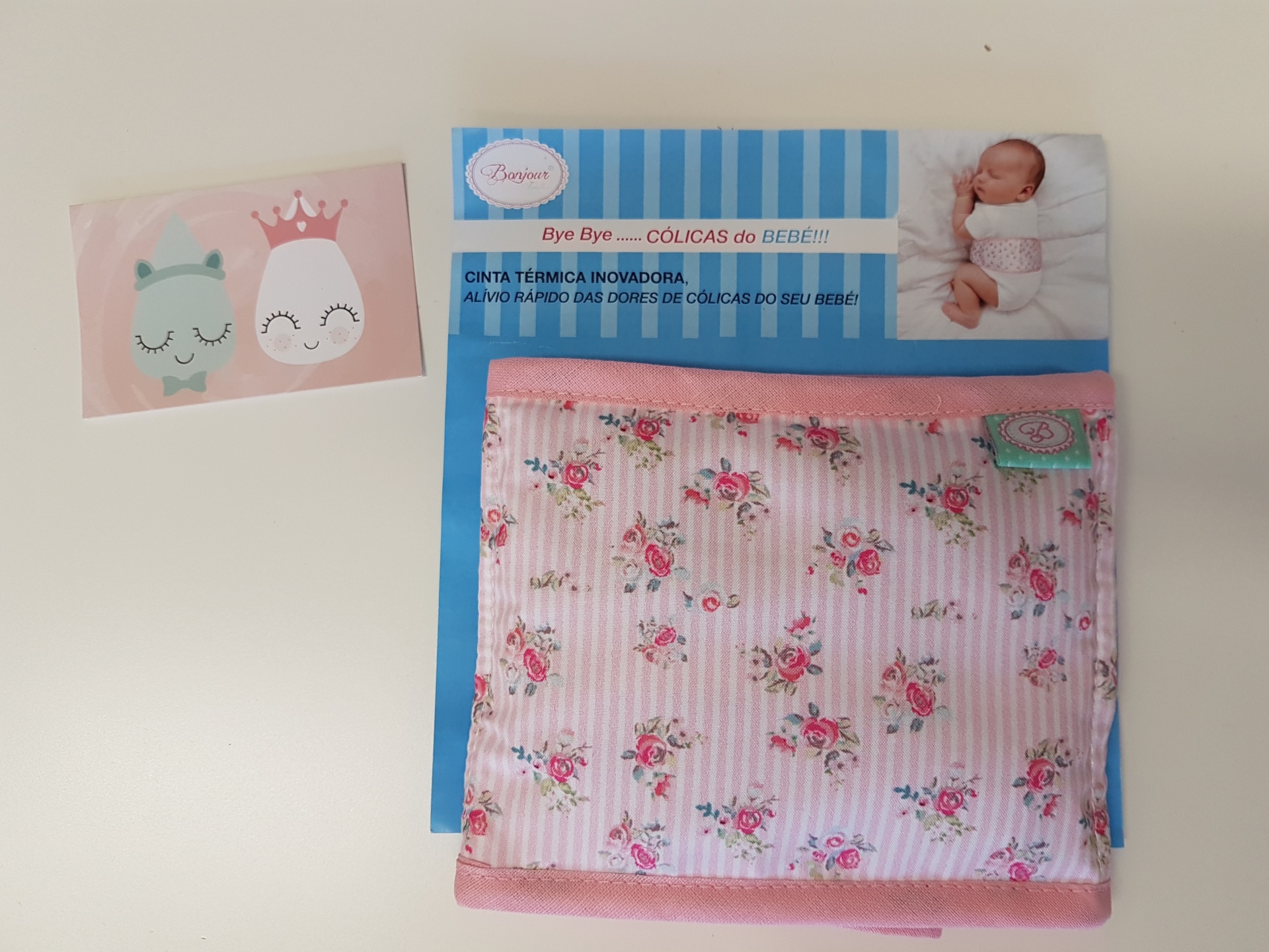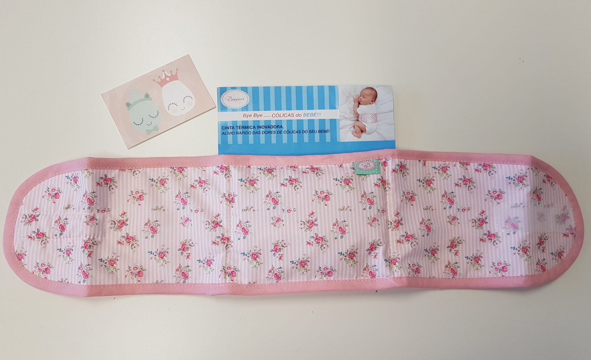 Cinta para aliviar as cólicas do bebé em tecido rosa flores.