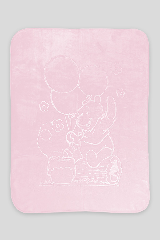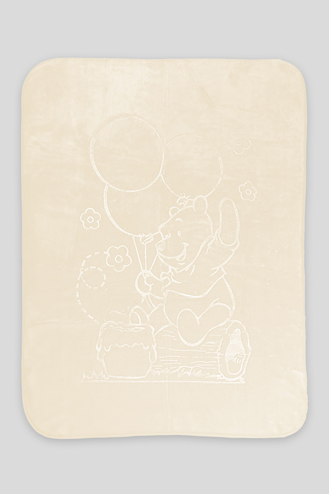 • Manta de bebé creme com desenho de ursinho a segurar balões.