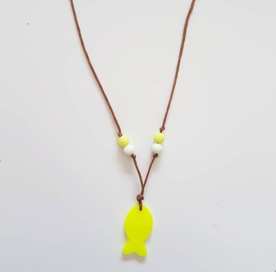 • Colar com pendente em forma de peixe amarelo fluorescente e contas brancas e amarelas