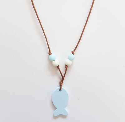 • Colar com pendente em forma de peixe azul e contas azuis e brancas