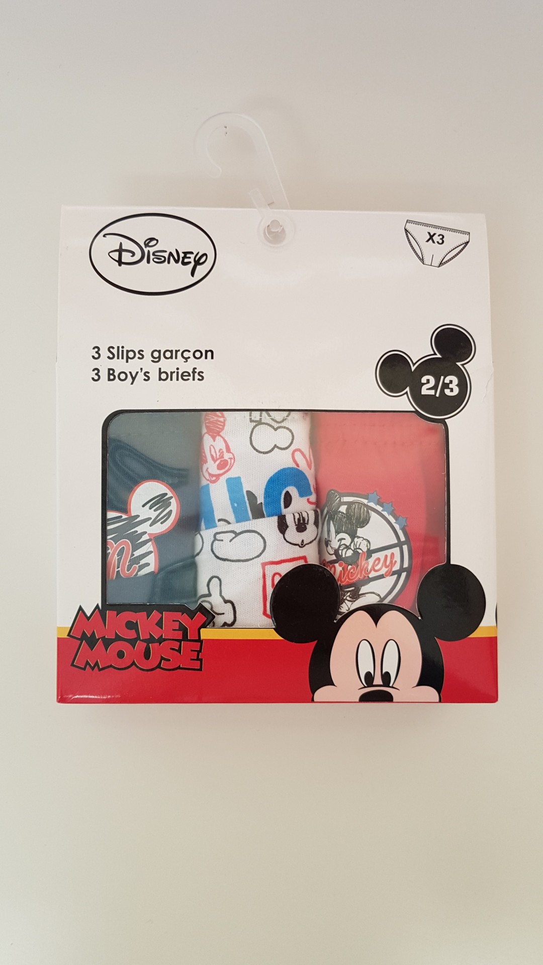 Conjunto de 3 cuecas do Mickey. Desenhos diversos.
