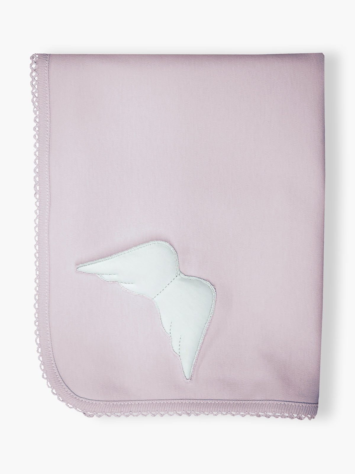 • Cobertor cor-de-rosa com asa branca e bordas rendadas
