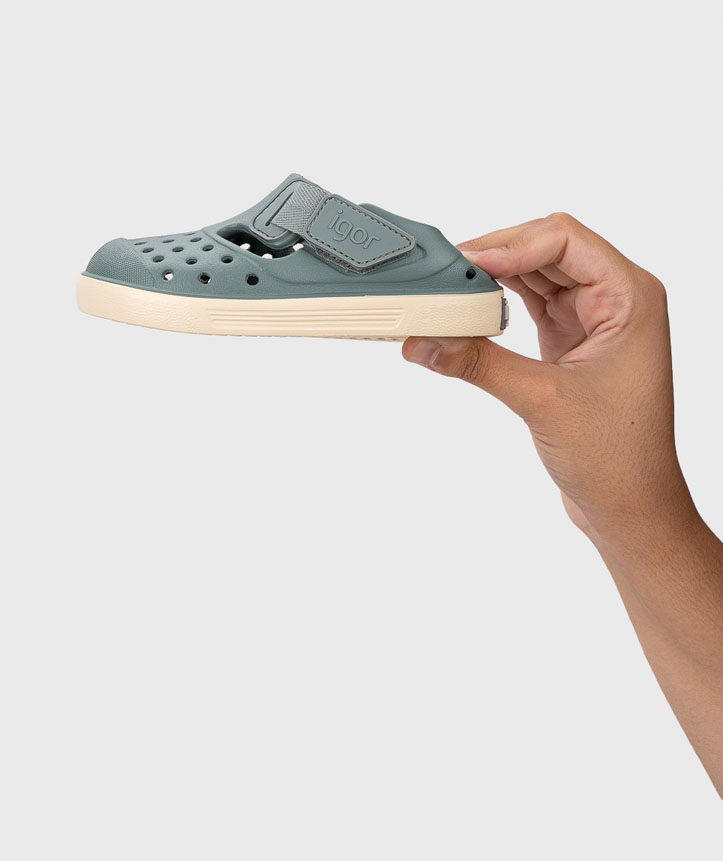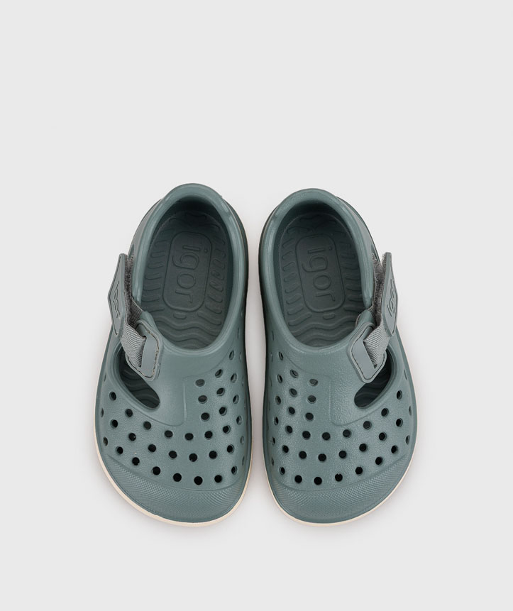 • Sandálias verdes com orifícios e tira ajustável da marca Igor