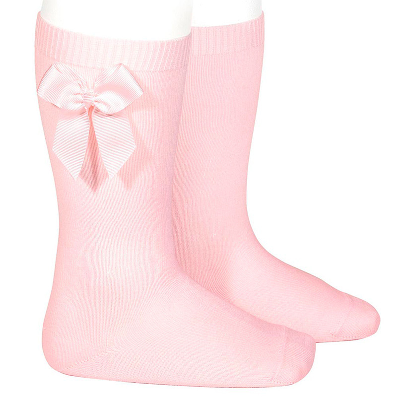 Meias de algodão, da marca Ysabel Mora, altas, com laço de gorgurão lateral.